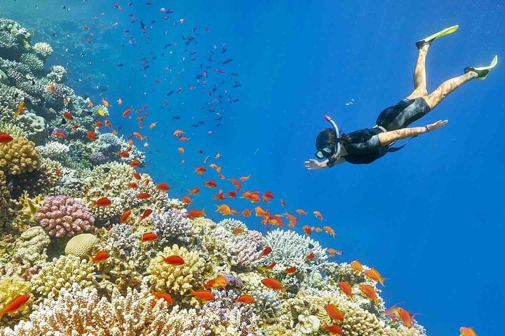 Embark on a snorkeling adventure that unveils the tropical charm of Egypt. Climb aboard a boat and witness the captivating coral reefs and picturesque lagoons enveloping the Marsa Alam island.