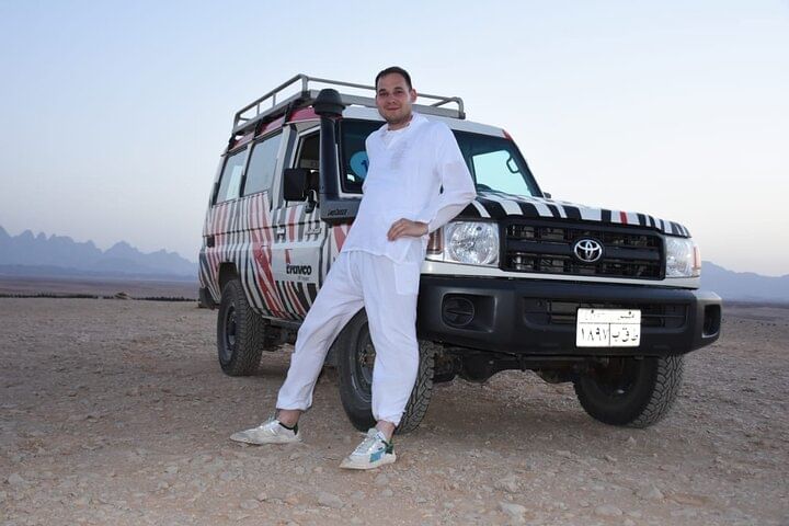 Begin with pickup by Land Cruiser Jeep safari to your tour starting point. Then, venture into the picturesque desert of Hurghada. Drive through the sunset observation area until you reach the Bedouin camp.