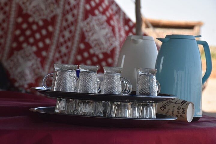 Next, receive a cool and refreshing welcome drink as well as herbal Bedouin tea. Continue with your guide and experience traditional Bedouin life, including a Bedouin buffet dinner. After dinner, relish the tranquility of the desert and the millions of stars away from the noise of the city. Follow your guide on a trip to see the distant milky way represented through the stars