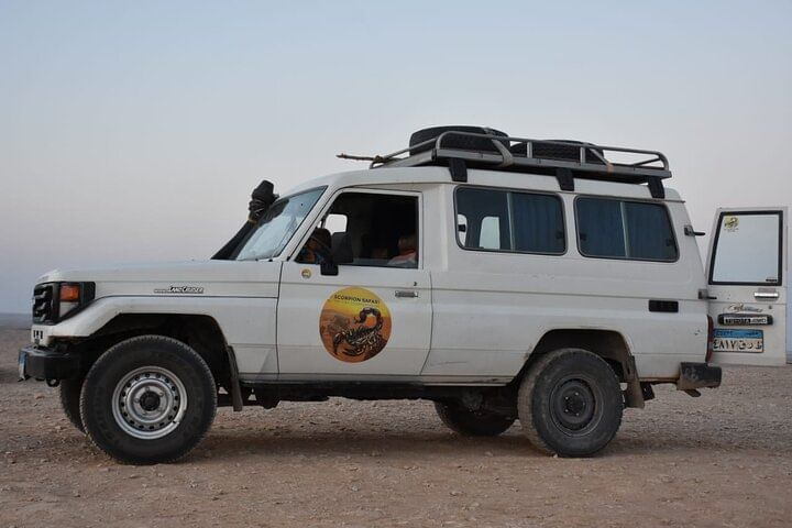 Embark on a scenic Jeep journey through sandy dunes, immersing in Egypt's natural beauty.