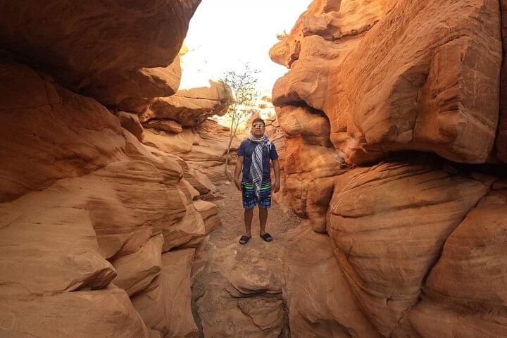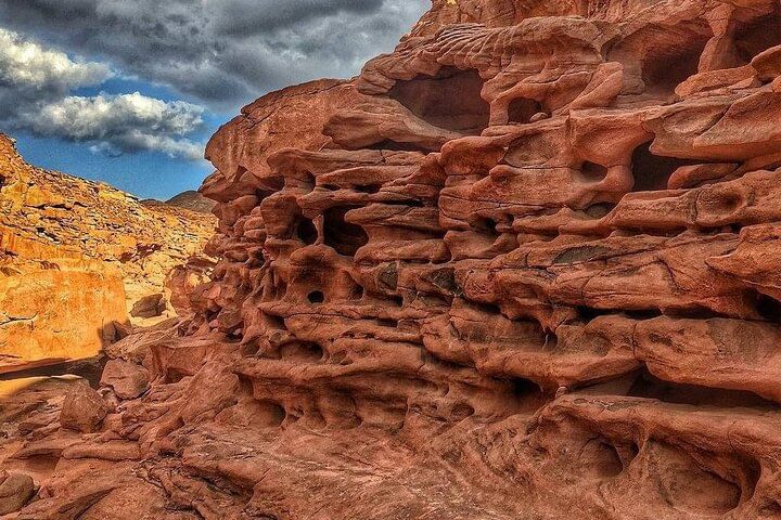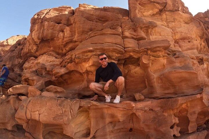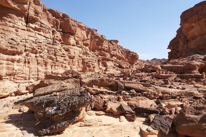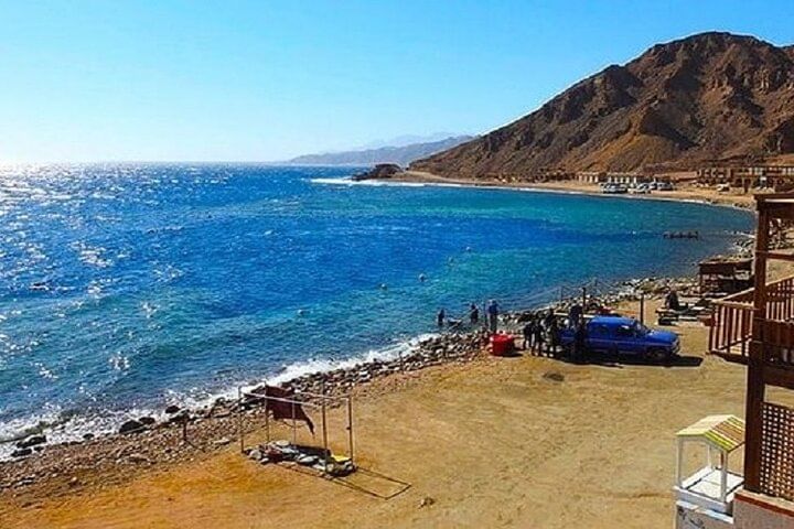 Air-conditioned vehicle , Hotel Pick up & Drop off Guide assistance - Jeep Safari To Canyon Salama Shopping Stop in Dahab. Camel ride 10 min Lunch + Snorkelling