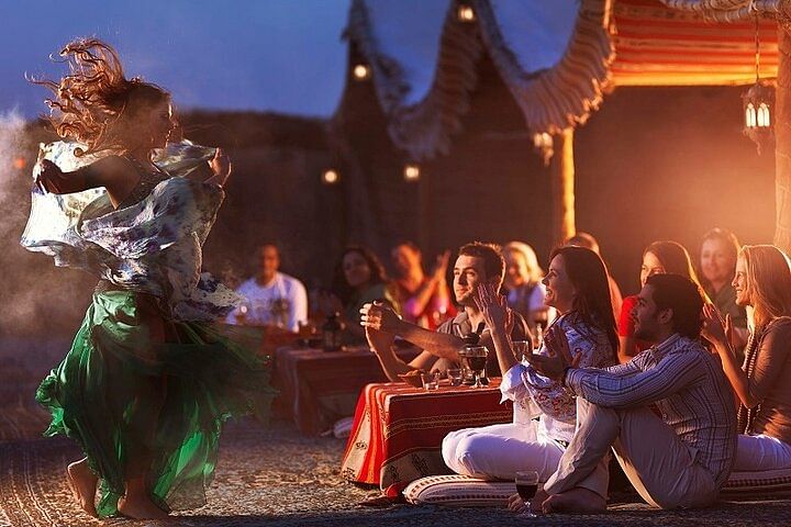 Discover the vast expanse of the Sahara and the desert mountains, enjoy the thrilling ride through the desert sand. Afterwards you will get in a dune buggy and enjoy a very special driving experience. You will then continue on to a Bedouin village. You also have the option of taking a camel ride. Enjoy a cozy evening barbecue in the open air and admire the fantastic views of the sunset. Watch a traditional show and marvel at the Fakeer Show, Tanoura dancers, and belly dancers.