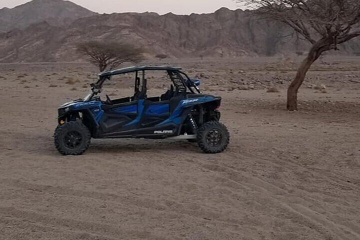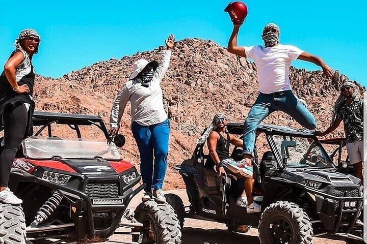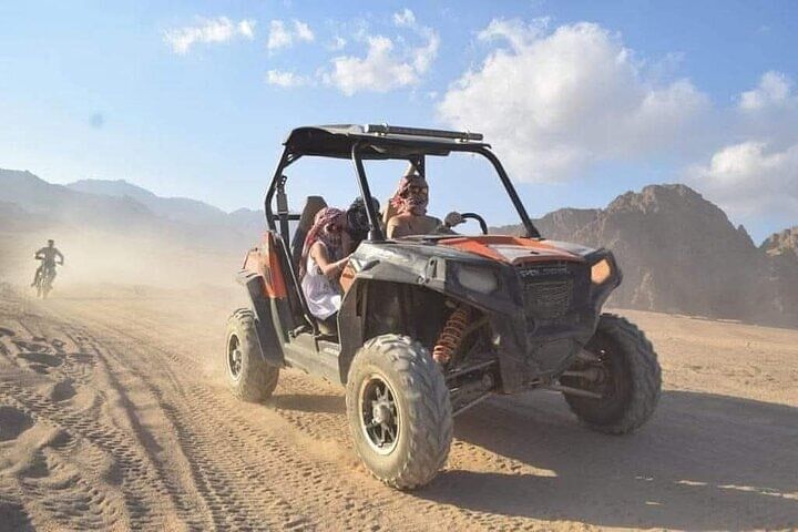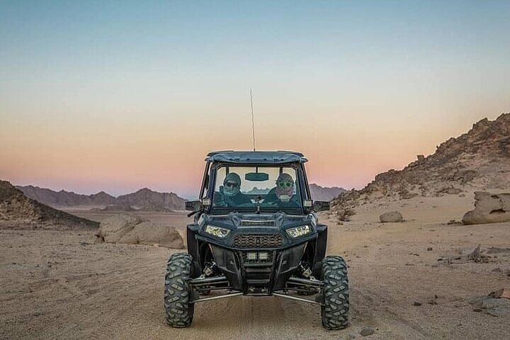 Your hotel pickup in Hurghada marks the beginning of an adventure as we transport you to our off-road base in the desert wilderness. Engage in a thrilling self-drive experience across the stunning desert landscape, guided by an expert providing thorough safety instructions. Over the two-hour journey, you'll actively navigate for about 90 minutes, with periodic stops for capturing memorable moments through photos. Whether you choose a solo drive in a single buggy, share the excitement in a double-seater buggy, or embark on the journey with your family in a four-seater buggy, this promises to be an indelible and extraordinary experience!