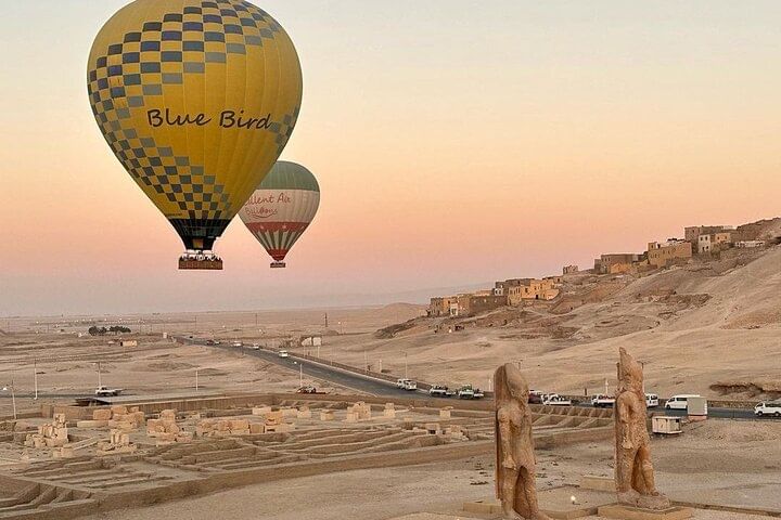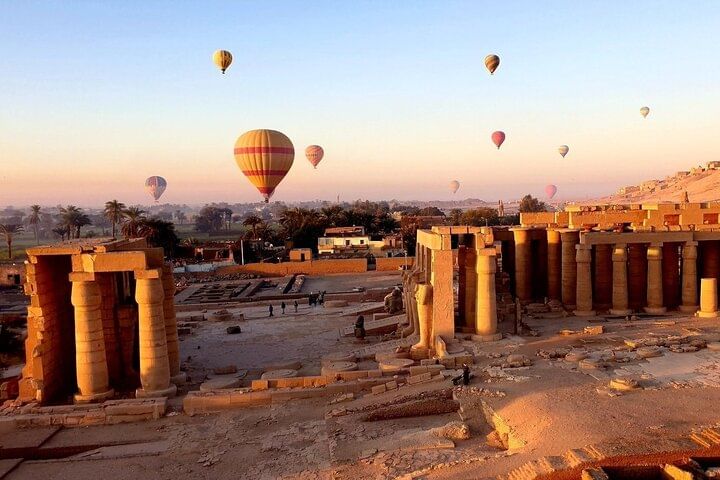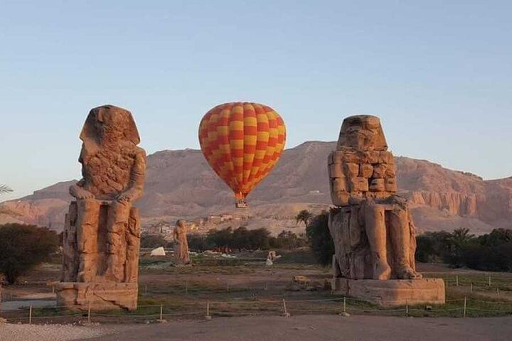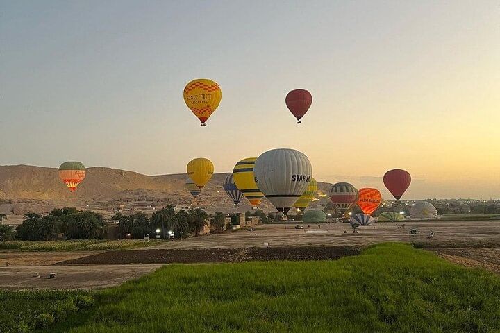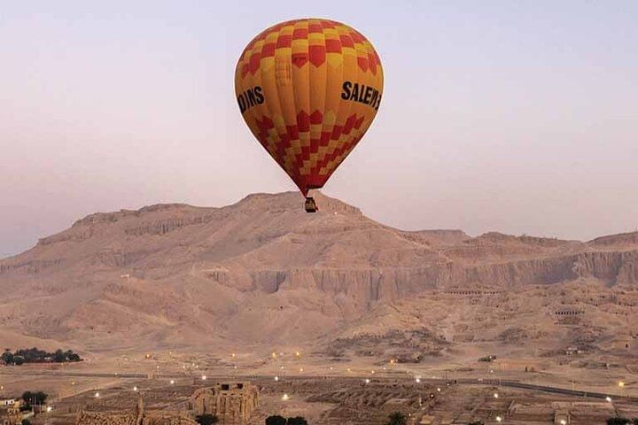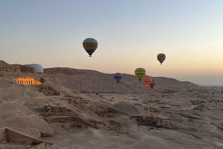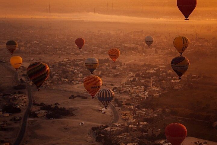 Witness the mesmerizing sunrise over Luxor from a truly unparalleled vantage point—the sky—by embarking on a captivating hot air balloon adventure. Your journey begins as a driver collects you from your hotel or the port, transporting you to the launch site. There, you'll ascend into the sky as the sun casts its first rays over the desert and its ancient temples, granting you an entire hour of awe-inspiring sightseeing.