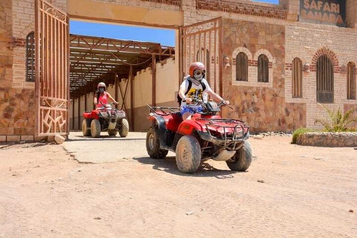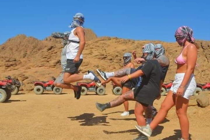 Explore the Magic of Red Sea Desert by Quad bike on this exciting tour from Sharm El Sheikh. Relax, try the Camel ride drink Bedouin tea, and experience the Bedouin lifestyle enjoying Dinner, Bedouin Show, and Party before heading back through the sand dunes to the starting point.
