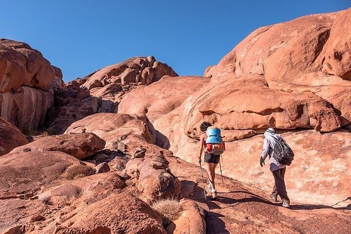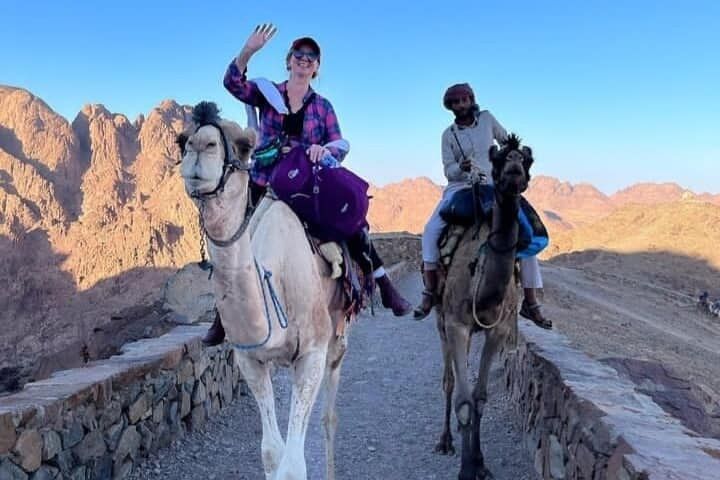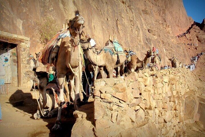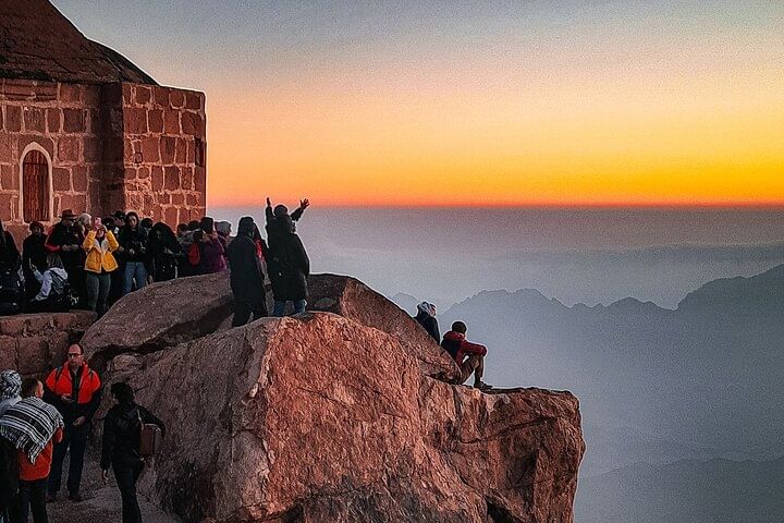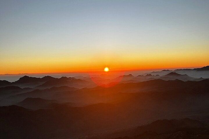 Book a private nighttime hike that's timed to catch the sunrise from the heights of Mount Sinai Climb and St Catherine Monastery . Watch sunrise from the top of Mount Sinai on a hiking trip from Sharm el Sheikh to one of Egypt’s highest mountains. You’ll climb the 7,497-foot (2,285-mt.) peak in the predawn darkness, see first light illuminate the mountaintop chapel and mosque, then descend to the 6th-century Monastery of St. Catherine, built where Moses is believed to have seen the Burning Bush. With Private round-trip transport from Sharm el Sheikh, this is a great way to experience Mount Sinai and St. Catherine even if you have limited time in Egypt. Hike to the summit of Mount Sinai Leave in the dark to catch sunrise at the mountain Option to ride a camel most of the way (own expense) Visit the oldest continually-operating monastery in the world See centuries-old Christian art and relics Pickup and drop-off at hotels in Sharm el Sheikh